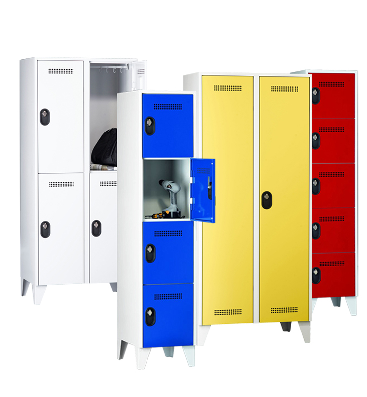 Die stabilen Schränke aus Stahlblech sind mit einem Hutboden und einer Kleiderstange mit Schiebehaken ausgestattet und in vier unterschiedlichen RAL-Tönen lieferbar. Auf Wunsch sind auch Sonderlackierungen möglich.